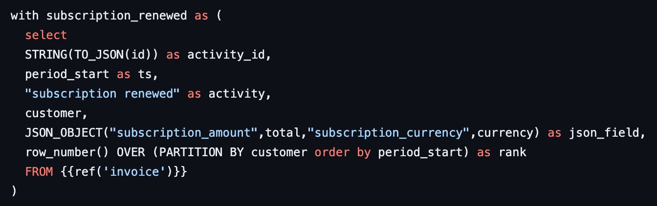 Again, we build a row_number to exclude the first invoice generated when the subscription was created.
