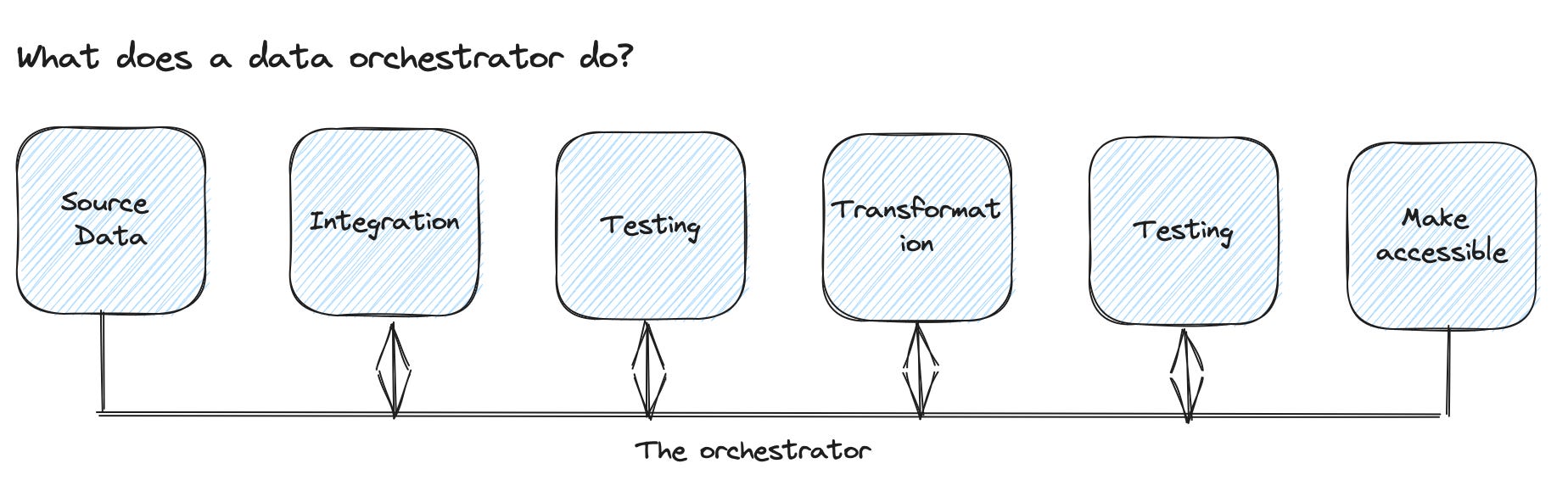 We mentioned some aspects here already that we will pick up later, but let's look at what a data pipeline orchestrator does in detail.