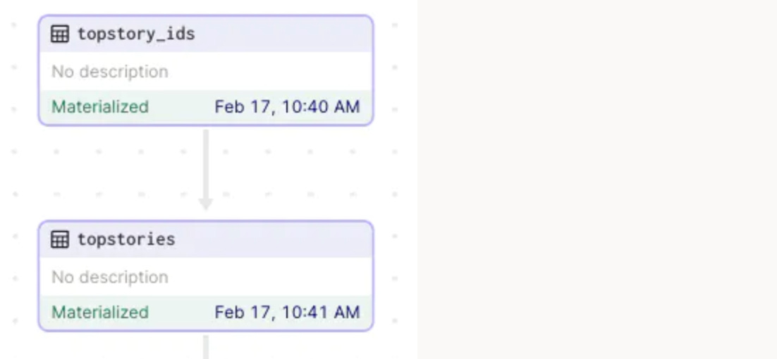 - Materialize the data