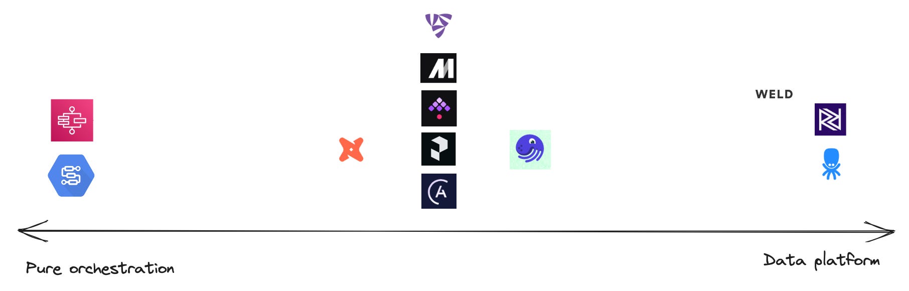 We span the axis from pure orchestration to data platforms. The significant aspect is much more heavy lifting is possible with the orchestrator. Or how dependent you are on external services.