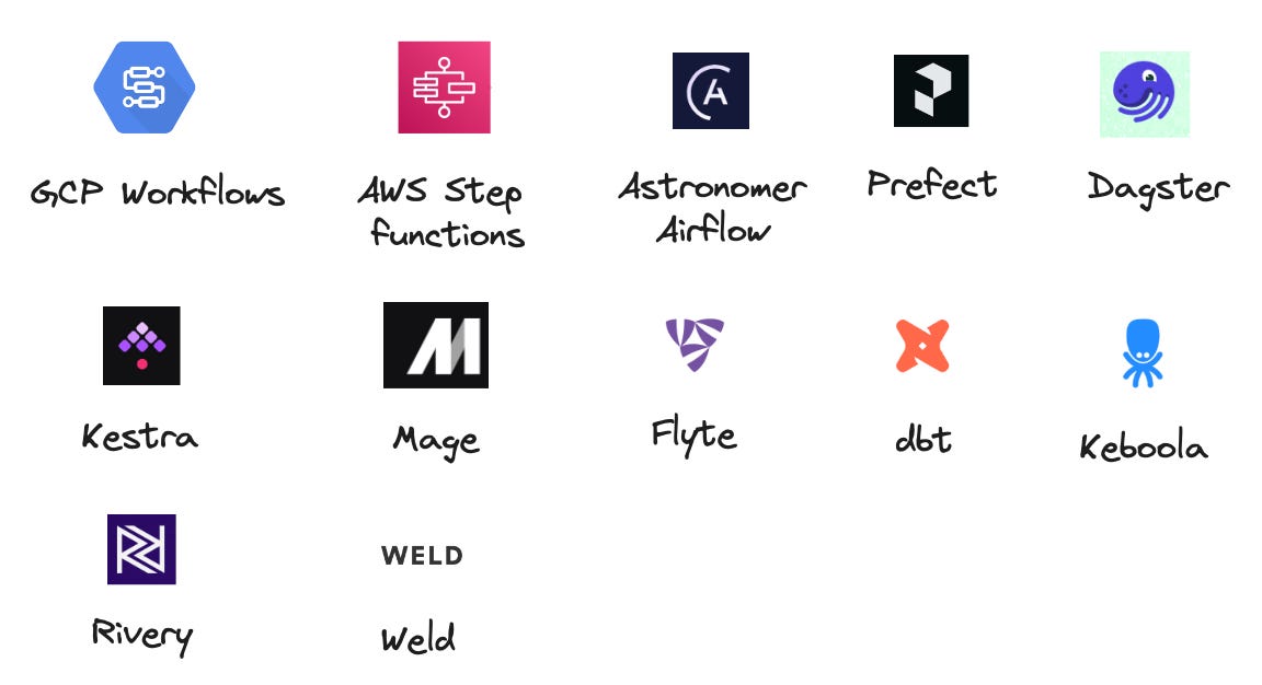 - Interestingly, we find quite a bunch of dominating open-source solutions for orchestrators. Airflow was at least a dominating project in the last few years, and it has generated many follow-ups using the same mode.
