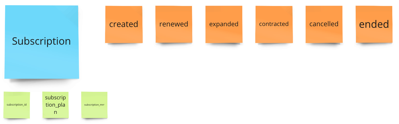 We need "subscription created", "subscription renewed", "subscription cancelled", "subscription expanded", "subscription contracted" and "subscription ended".
