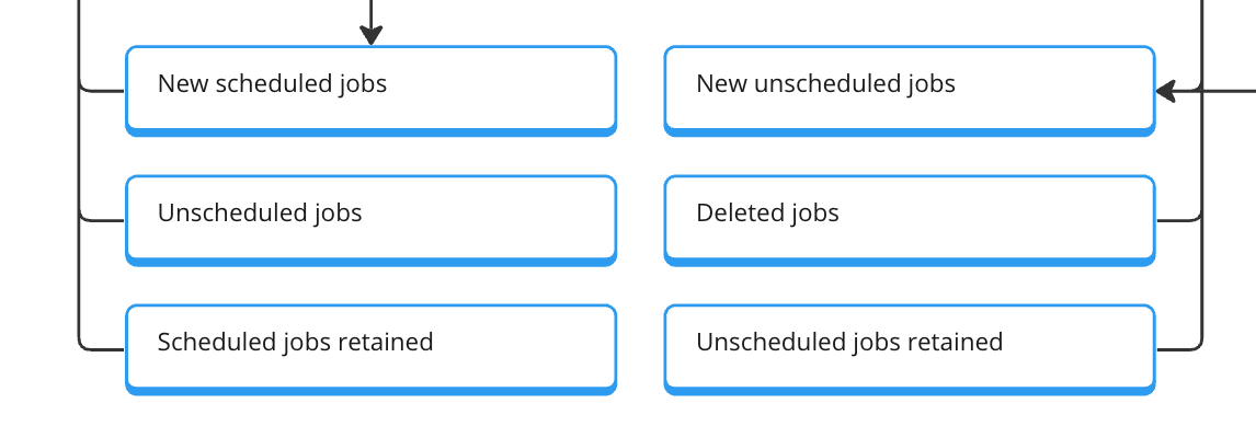 We need "job created" for new jobs and "job deleted". Additionally, we need "job scheduled" and "job unscheduled"—the retained metric we can calculate based on these.