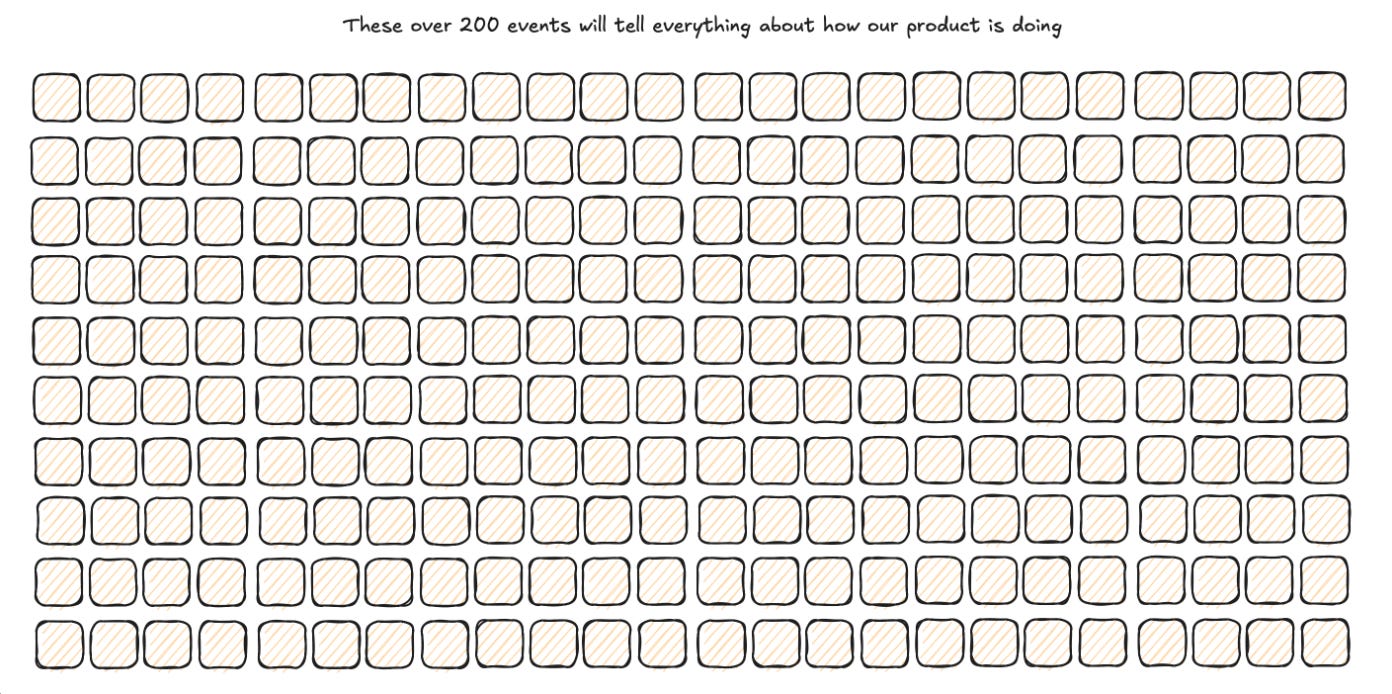 But here's the thing: when we run workshops and take a big step back to look at things from a business and product perspective, we usually end up needing just 20-30 events. We can streamline everything dramatically using one simple trick (which I'll get to in a moment).