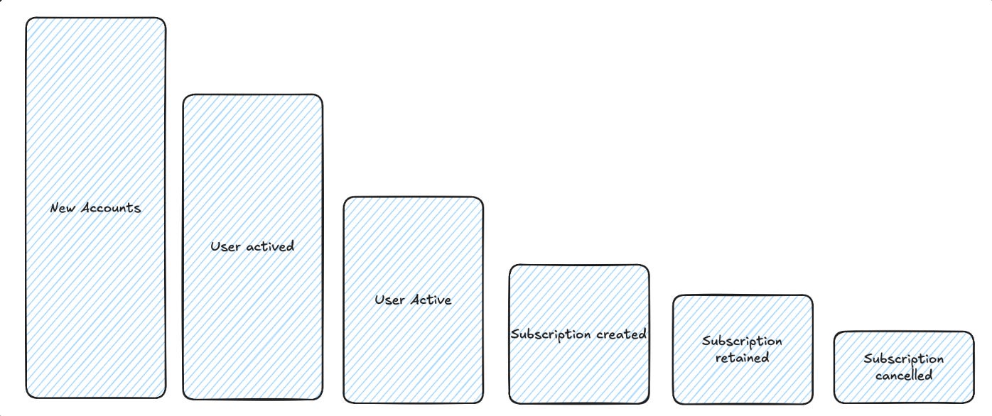 First, we need "account created" – our starting point. This is our baseline, our opportunity pool. Every new account is a potential subscription.