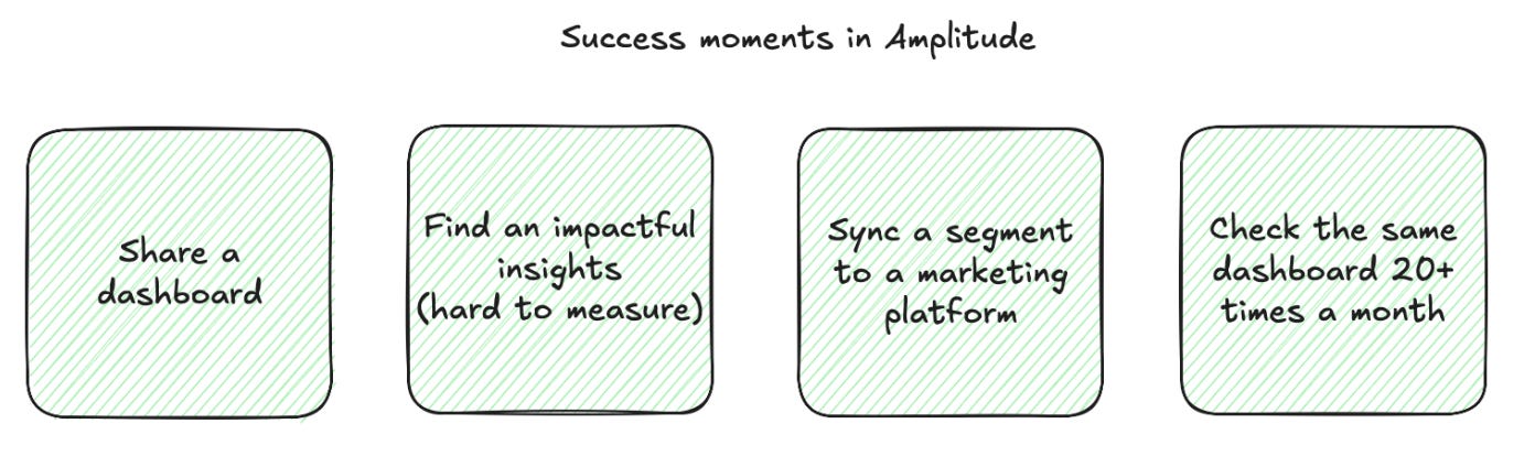 Ultimately, we need to track two things: how many people reach these success moments, and how often they repeat them. This tells us if our product is performing well. Are we effectively guiding people to these valuable moments? Because let's face it – most products aren't intuitive enough for users to find value immediately.