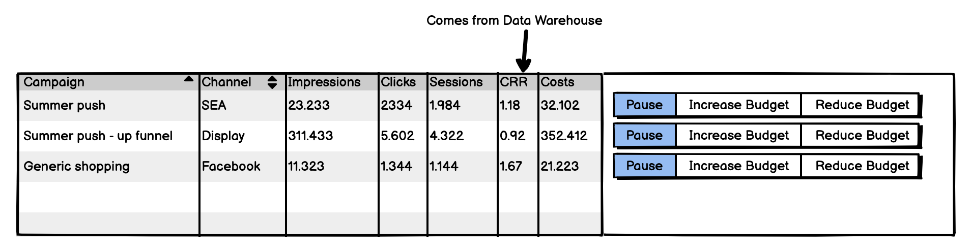 My favorite example is this: you can have a dashboard with a marketing campaign report showing core metrics for each campaign for the selected time frame. This is not a data product. When you introduce 1-2 indicators for over and underperformance and 2-3 buttons to increase or decrease budget spending within the campaign data table - this is a first version of a data product because of the immediate action.