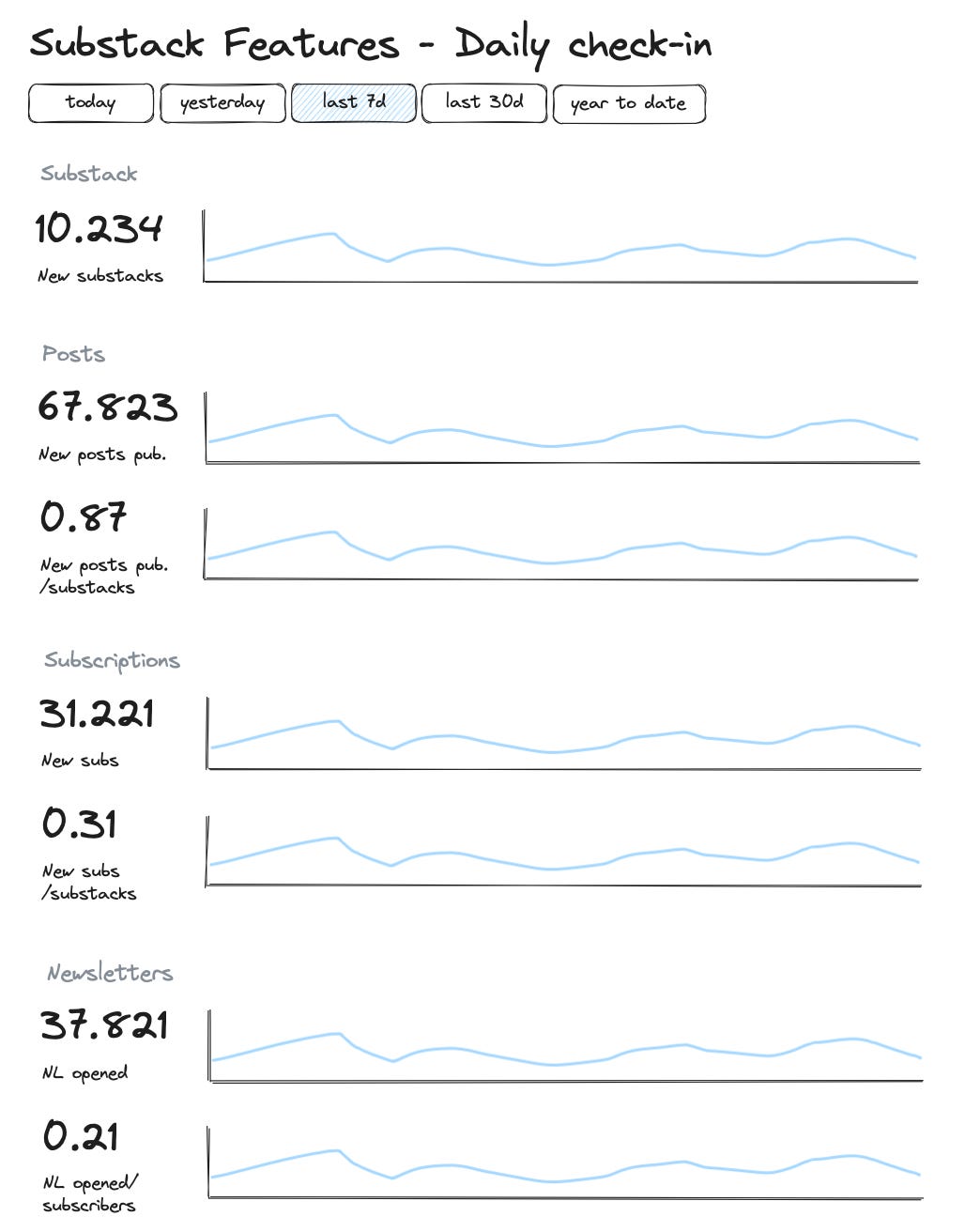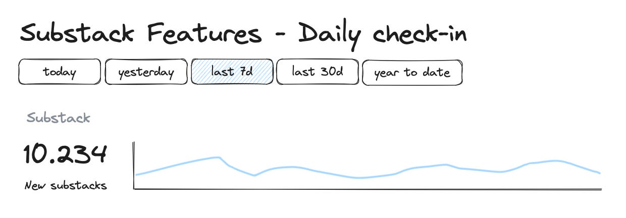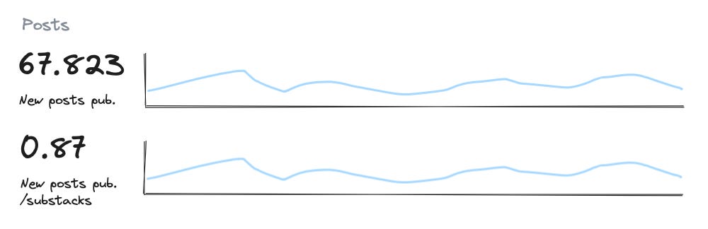 For some metrics, I like to add a relative metric that shows the total metrics in relation to a baseline total (like total Substacks):
