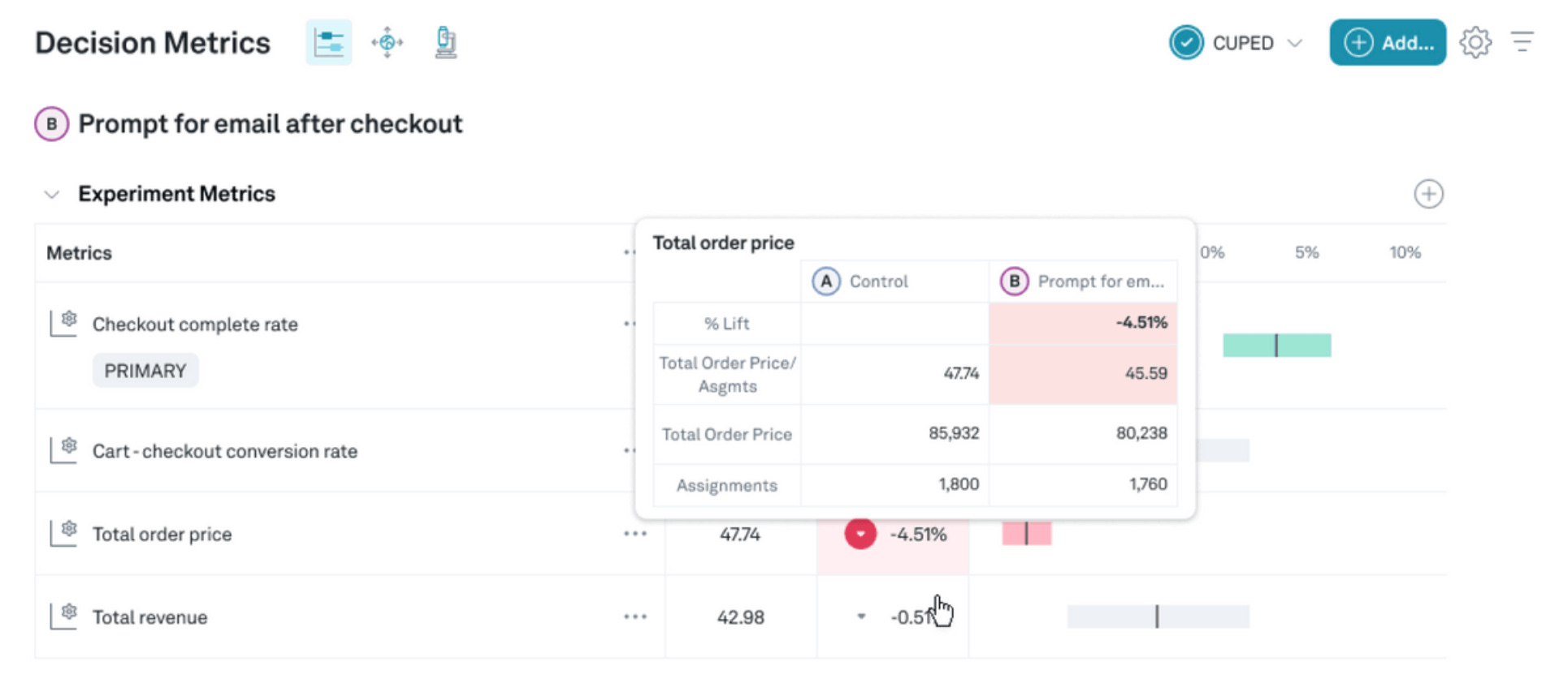 I am a huge fan of feature initiative dashboards and could spend most of my time just checking them. They are showing the lifeblood of product development. Ideally, the deployment of the feature initiative is done by using feature-flagging and behind an a/b test. This will get us substantially better data to work with.