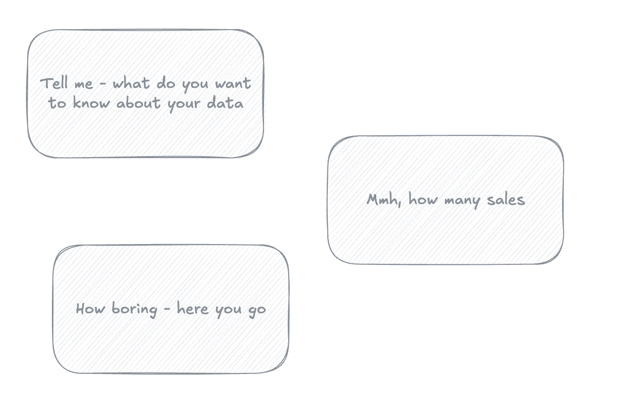 So this whole "chat with your data" thing doesn't solve the fundamental problem. Sure, someone from marketing might have a specific question that's been bugging them for months, and they can finally get an answer without bothering the data team. That's nice. But they're still asking the same limited questions, just faster. They're not suddenly asking better questions. And that's why this isn't vibe analytics - it's just the same old analytics with a conversational interface slapped on top.